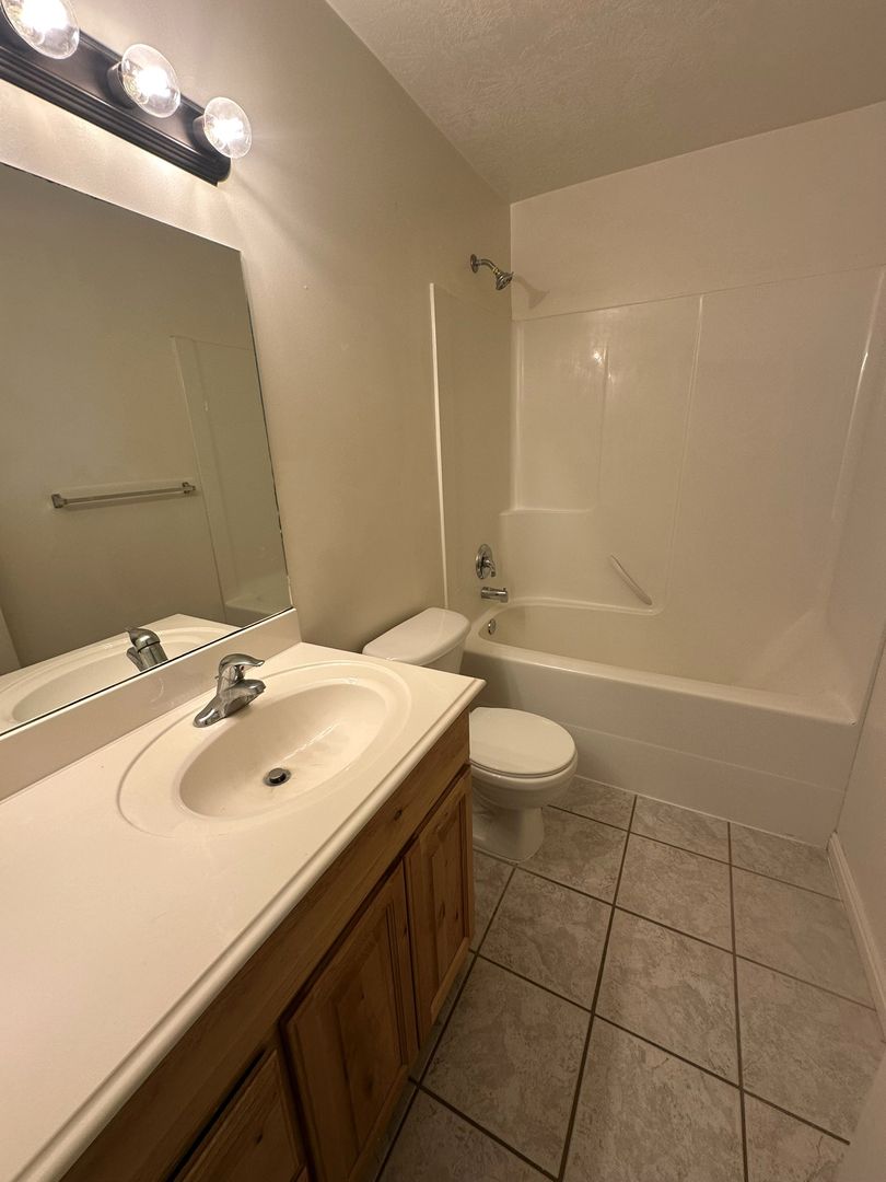 ✅ Full bathroom with combined vanity, toilet, and tub/shower