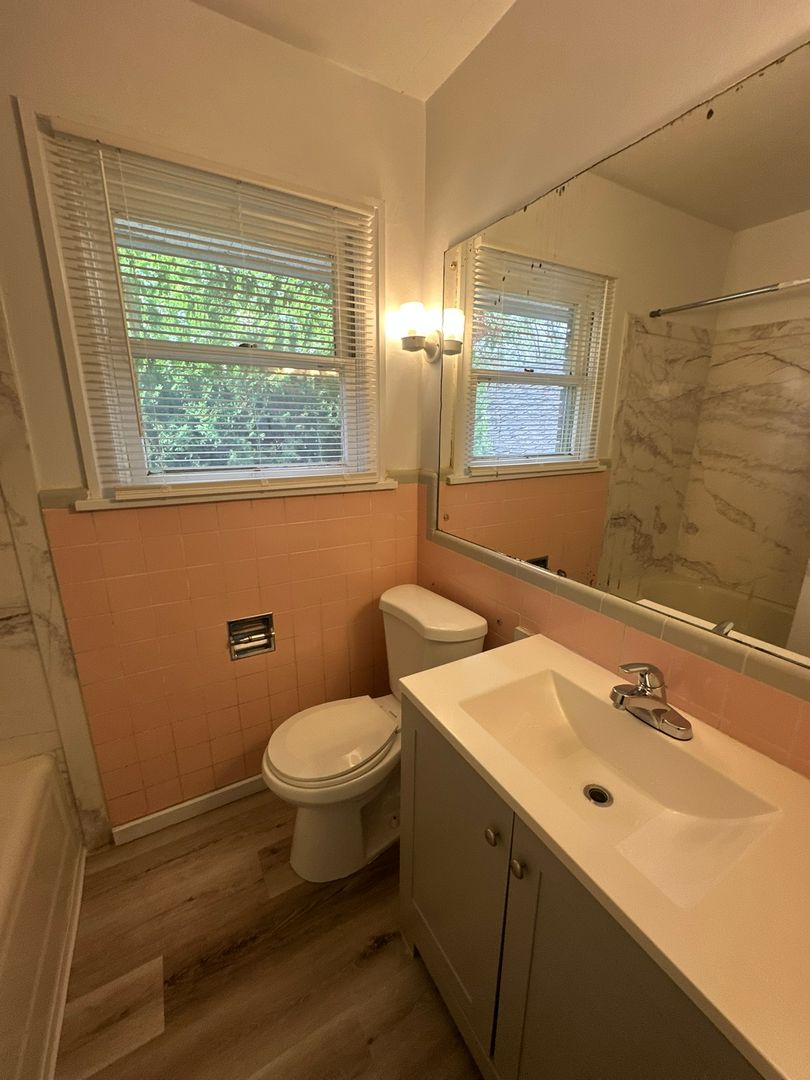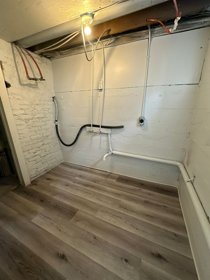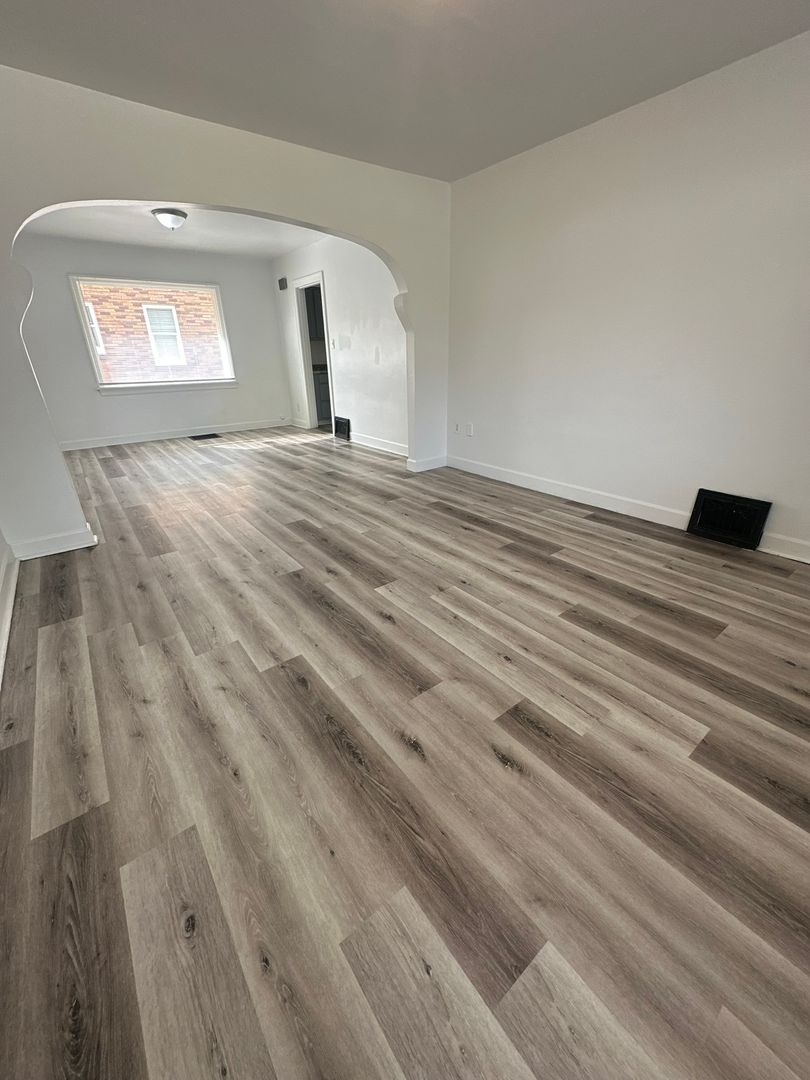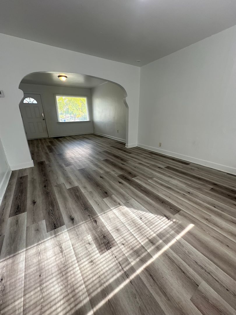 Step into a modern kitchen with upgraded cabinets, refreshed shower/tub surrounds, and stylish finishes that make everyday living feel easy. New durable LVP flooring flows through the main living areas, while the bedrooms offer cozy, freshly installed carpet. Fresh paint throughout brightens every space, and the kitchen comes complete with quality appliances including a refrigerator and stove. The spacious living room features a charming archway, and the finished basement provides a versatile bonus area that can serve as a family room, home office, or entertainment space. Enjoy the added convenience of a utility room with sink and washer/dryer hookups, an extra storage room, and lawn care included in the rent.